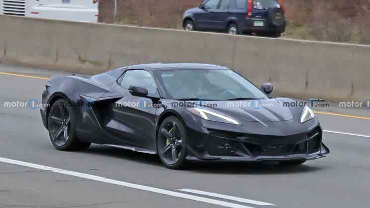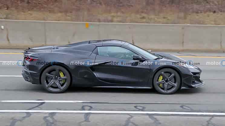 此前,外媒已經拍攝到瞭該車的無偽裝諜照,不過這臺測試車的外觀卻是Z06版本的造型。車頭前包圍擁有非常犀利的散熱開口設計,兩側還有非常醒目的“風刀”擾流板,看上去攻擊性十足。