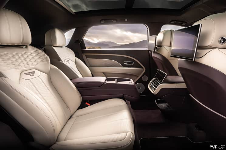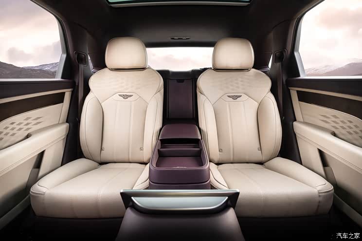 內飾方面,添越長軸距版的後排將擁有三種座椅配置可選,包括全新4+1(5座)、4座以及傳統5座佈局,並提供航空級座椅套件,具備22向可調節功能,擁有全球首創的自動溫度感應和舒逸按摩功能。4座舒適座椅配置包含一款位於後排座椅之間的中控臺,提供額外的儲物空間和兩個USB充電接口。此外,Mulliner部門還為新車設計瞭集成式冷卻裝置可選,該冷卻裝置含一支750毫升的容器,以及一對手工打造的坎佈裡亞水晶杯。