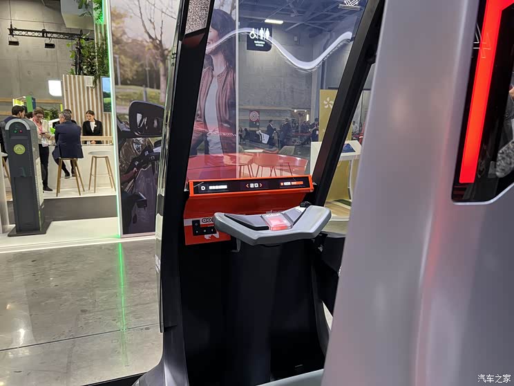 內飾方面,可以看到車內的轉向機構以及顯示屏幕都十分簡易,甚至與公園裡的電瓶車不相上下。車內配備單個座椅,椅墊可以前、後移動來調整坐姿,同時還能提供部分儲物空間。另外,車內還配備有1個安全氣囊和一個緊急停止按鍵應對危險狀況。