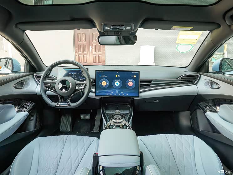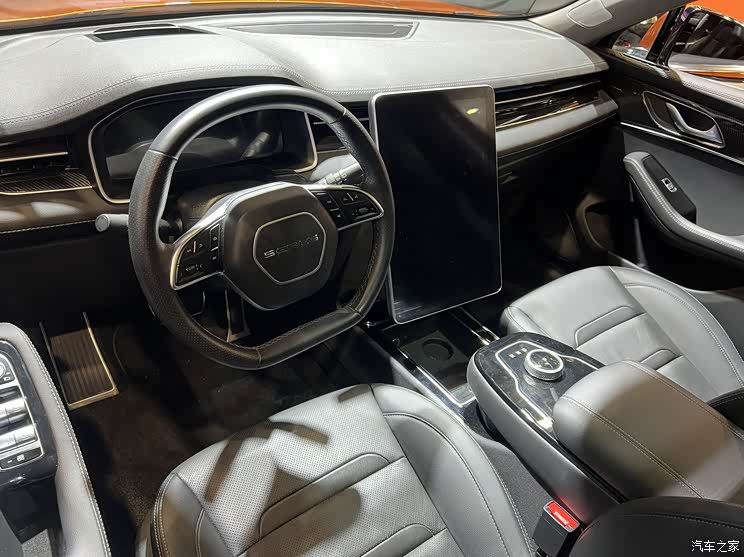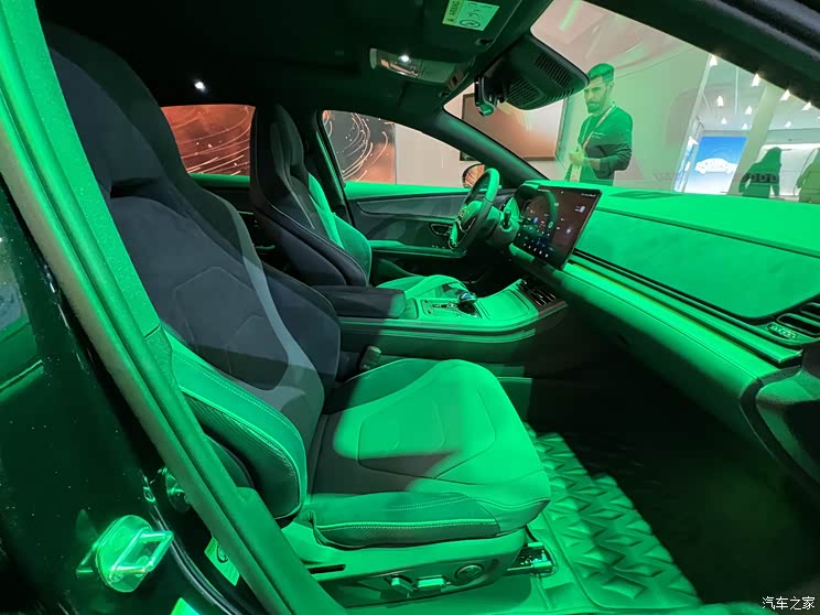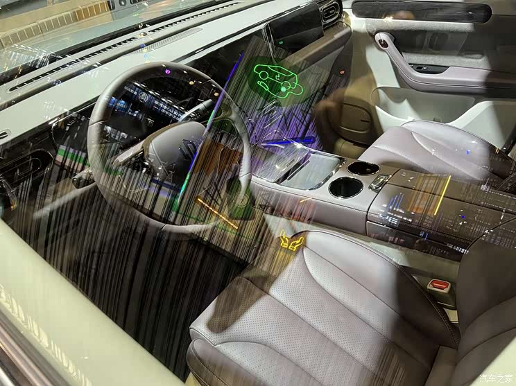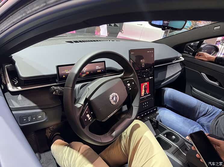 在車內,這款車配備瞭多塊屏幕,這其中包含有12.3英寸的全液晶儀表和12英寸的中控豎屏,以及一塊9.3英寸的抬頭顯示系統。對瞭,千萬別以為杯架旁邊的是換擋桿,它是一個可以動的手托,讓駕駛員的右手有地可放,這款車實際采用的是懷擋。
