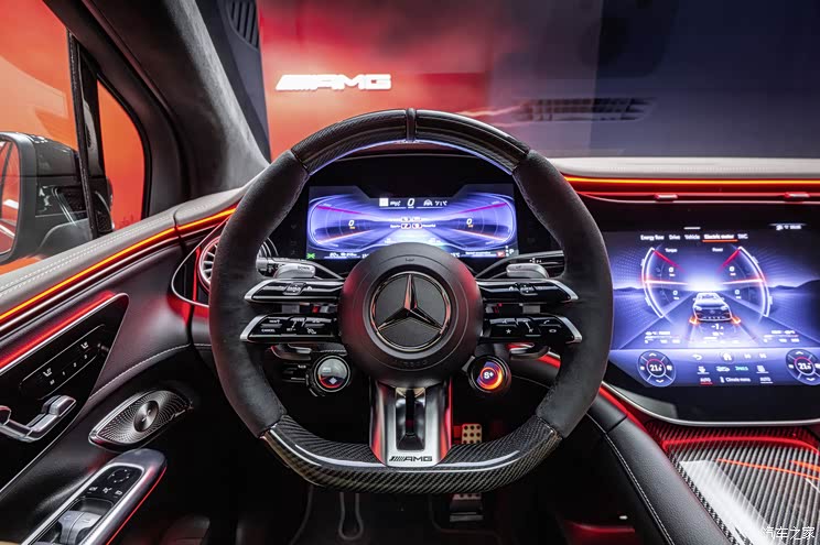 同時發佈的還有它的AMG版本——EQE 43 4MATIC SUV/EQE 53 4MATIC+ SUV,該車通過諸多細節的調整來體現它性能版的身份。這其中包含有Panamerican格柵、AMG傢族徽章、專屬輪圈、碳纖維車內飾板、AMG方向盤等,車機UI也提供更加戰鬥的風格。