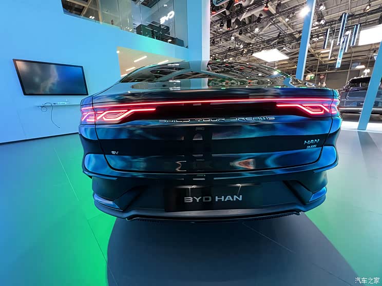 歐洲銷售的比亞迪漢基本延續國內漢傳世版的外觀,車頭不再使用“漢”LOGO,而是變成瞭“BYD”的統一標識。車輛尾部,漢的中文名稱也變成瞭HAN,從尾標3.9S、EV來看,展示的車型在國內為漢EV創世版610km四驅尊貴型,0-100km/h加速3.9秒,電機總功率380千瓦,總扭矩700牛·米。