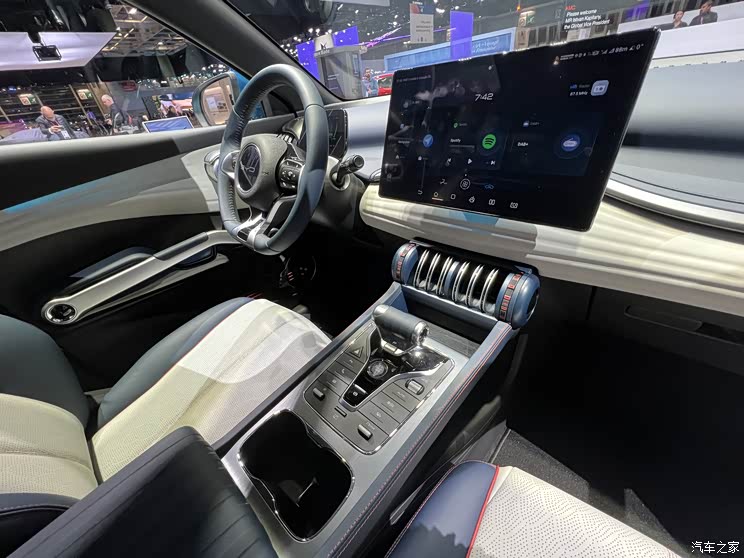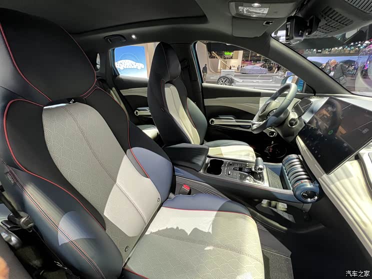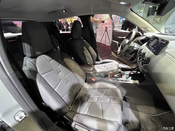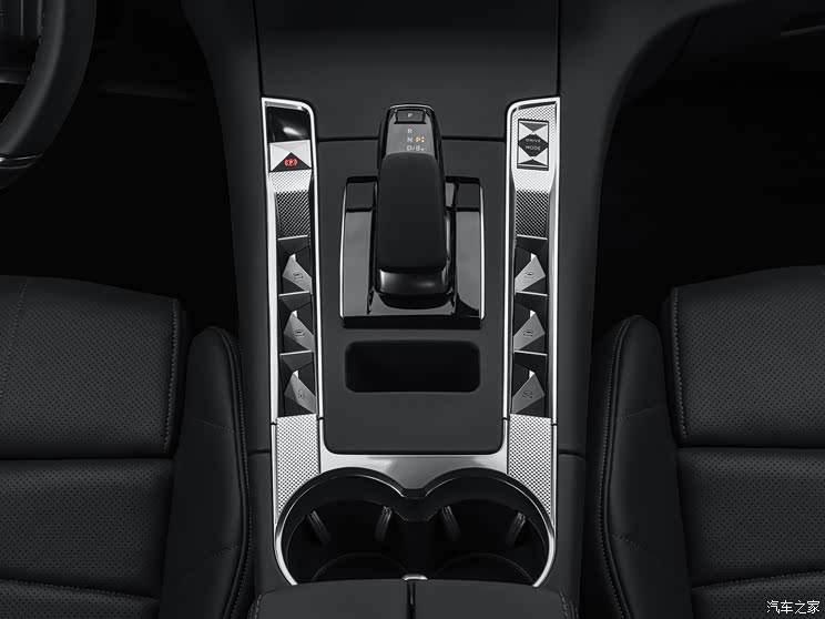 從內飾來看,新車依舊延續瞭燃油版車型的整體設計,但在細節處進行調整。比如取消瞭中央空調出風口下方的觸摸屏,並新增瞭駕駛模式切換旋鈕作為替代,擋把的周邊區域則變化不大。