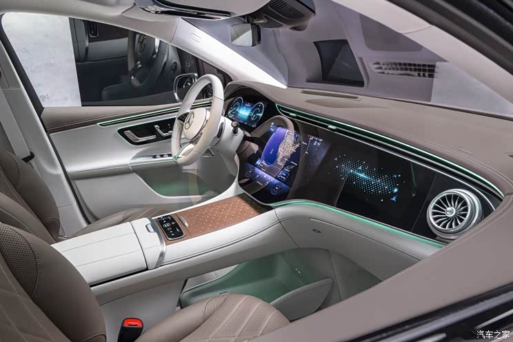 EQE SUV同樣擁有奔馳最新的數字化風格設計,可選的MBUX Hyperscreen大屏至今依舊令人印象深刻,當然絕大部分消費者購買的車型配備的是12.8英寸的S級同款豎屏,內置全新的MBUX人機系統,“零層級”界面的確好用,同時還擁有更強大的語音指令系統。新車也將引入杜比全景聲,配合Burmester 3D環繞立體聲音響系統。