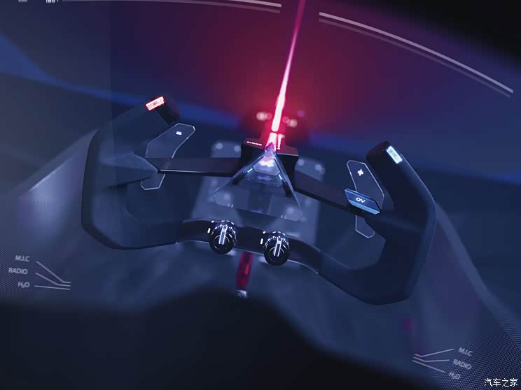 內飾方面,作為一款概念車型,內飾的設計更可謂天馬行空。新車的全液晶儀表盤是由區域獨立小屏組合而成,可以顯示眾多的行車信息,而三輻式方向盤的設計又顯得極為復古;中央過道區域配備瞭液壓手剎系統,整個內飾的造型佈局均為標準的賽道化設計。