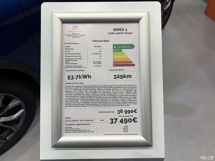 內飾方面,SERES 3與國內版本完全一致,整體設計非常簡潔,強調運動的三輻平底方向盤和類似飛機引擎造型的空調出風口讓內飾顯得並不單調,全液晶儀表+懸浮式中控屏的組合增加瞭內飾的科技感。動力方面,SERES 3電動機最大功率120kW,搭載一塊容量為53.7kWh的三元鋰電池組,WLTP純電續航裡程329km。
