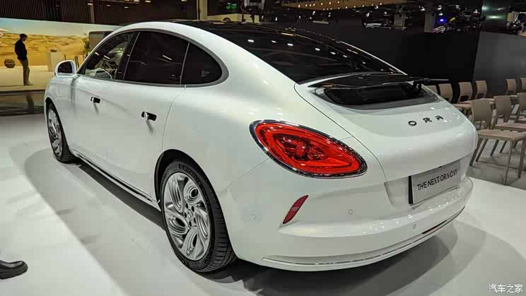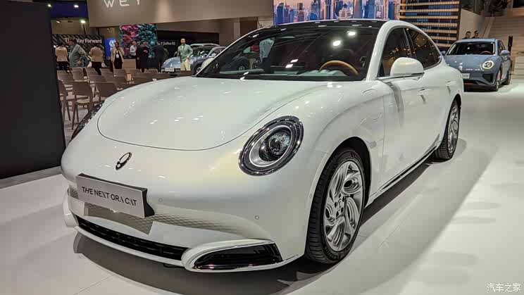 同時我們在展臺也看到瞭閃電貓的身影,該車名為“THE NEXT ORA CAT”,應該是還沒取好合適的英文名,該車與國內版本的設計也基本保持一致,車頭部分采用瞭封閉式的格柵設計,兩側配有橢圓形的大燈組,前包圍造型層次感分明,整體搭配看上去較為精致。