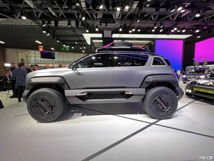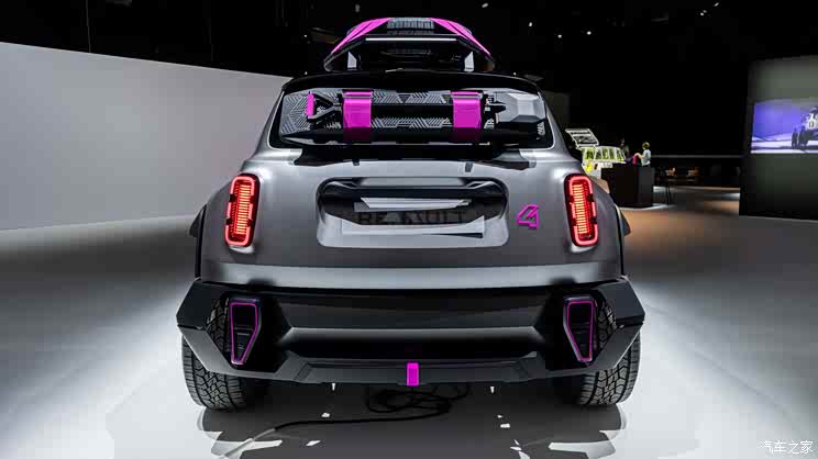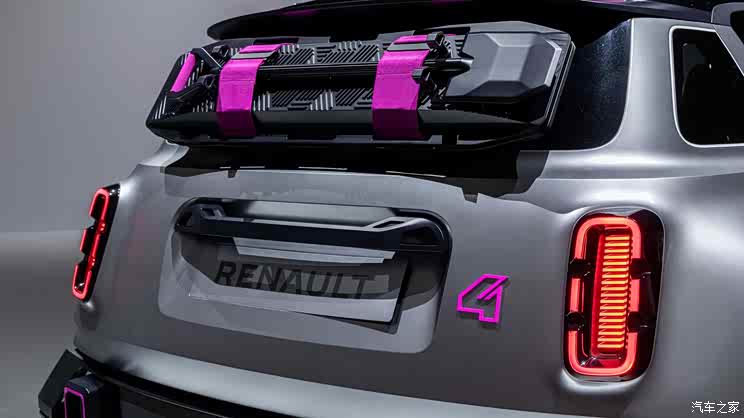 整車設計散發出強烈的探索精神,發動機艙蓋上方的大尺寸進氣口可極大提升其通風散熱效果,期間點綴的玫粉色裝飾與前後包圍、輪轂蓋等細節遙相呼應。側面來看,新車前低後高的車身姿態在神韻上與原版雷諾4如出一轍,較為平直的車身線條使整體造型看上去十分硬朗。