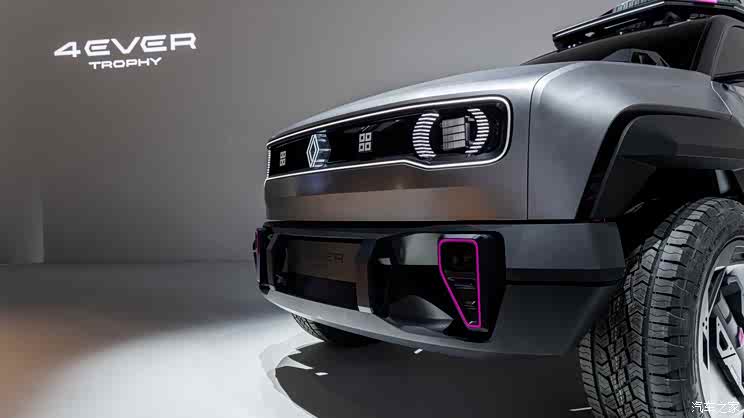 作為雷諾標志性產品之一,曾經的雷諾4在100多個國傢/地區銷售超過800萬臺。因此雷諾在電氣化轉型的契機下,試圖將這款傳奇車型以電動車的形式復活。雷諾4EVER Trophy在雷諾4的復古風范基礎上,延伸出更加具有未來感的創新設計,前大燈采用瞭非常具有辨識度的矩陣式LED光源,點亮時炯炯有神,中間搭配同樣發光的雷諾品牌LOGO,這樣的造型十分和諧。