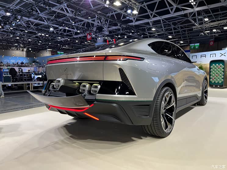 尾部的設計十分飽滿,尾燈內部采用X形LED光源設計,搭配熏黑後包圍套件、銀色後擾流板,與整車造型相搭配。