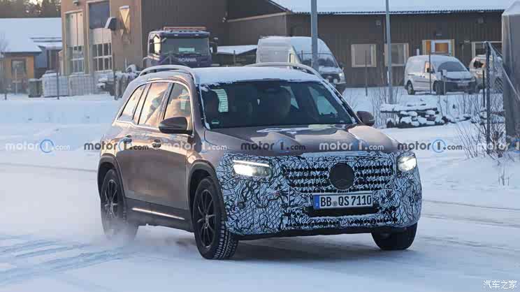 新款奔馳GLB的前大燈的尺寸和形狀似乎與現款車型相同,但預告圖中顯示的燈組內部構造或有調整。前格柵巨大的中央LOGO表示瞭它奔馳的身份,發動機前艙蓋上立體的線條營造出瞭不錯的肌肉感。