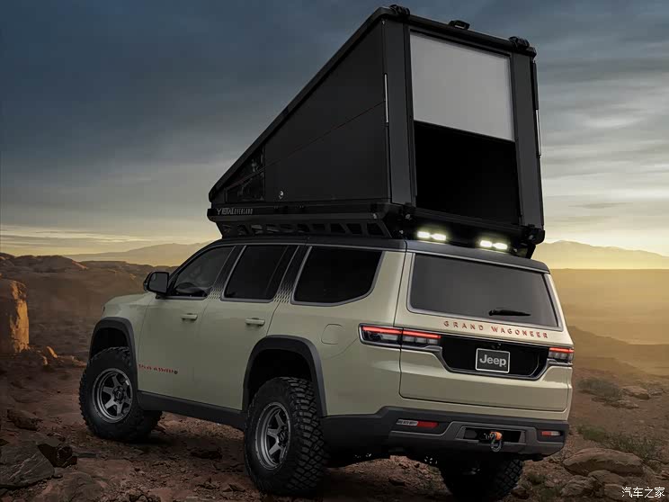 2023 Jeep Grand Wagoneer Overland概念車擁有豐富的外觀和內飾配置,核心亮點包括量身定制的RedTail Overland Skyloft車頂露營帳。Skyloft采用碳纖維結構,僅需單臂上推便可在大約10秒內將其從車內向外展開。為瞭將Skyloft整合至車頂,設計團隊首先拆除瞭第二排和第三排座椅,隨後調整瞭最後方天窗的位置,在較低的第三排乘坐區和上方的Skyloft之間打造出一個專屬全天候直通入口。前/後滑動門和小型步梯(亦可充當實用的邊桌)便於乘員進出。