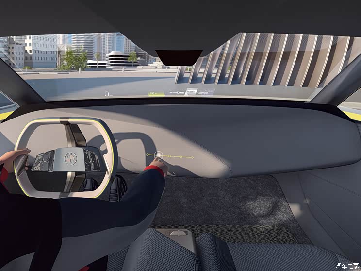 和外觀造型一樣,寶馬i數字情感交互概念車的內飾設計也是采用瞭極簡風格。新車最大的特點就是打造瞭車內數字化體驗,同時不會幹擾其他功能和設計元素。寶馬在新車上首次采用瞭寶馬先進平視顯示系統,該系統的投影內容能夠覆蓋風擋玻璃的整個寬度,讓信息能夠在盡可能大的表面上顯示。這意味著,這輛概念車內部不會有任何物理顯示器,隻會依賴於前風擋玻璃呈現的投影技術,來展示車內所有的顯示內容。無論是車輛的基礎數據還是娛樂系統,或者是其他用於娛樂的界面,甚至接入元宇宙世界,該前風擋玻璃將會作為唯一的數字界面與大傢進行互動。