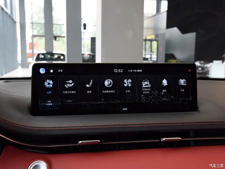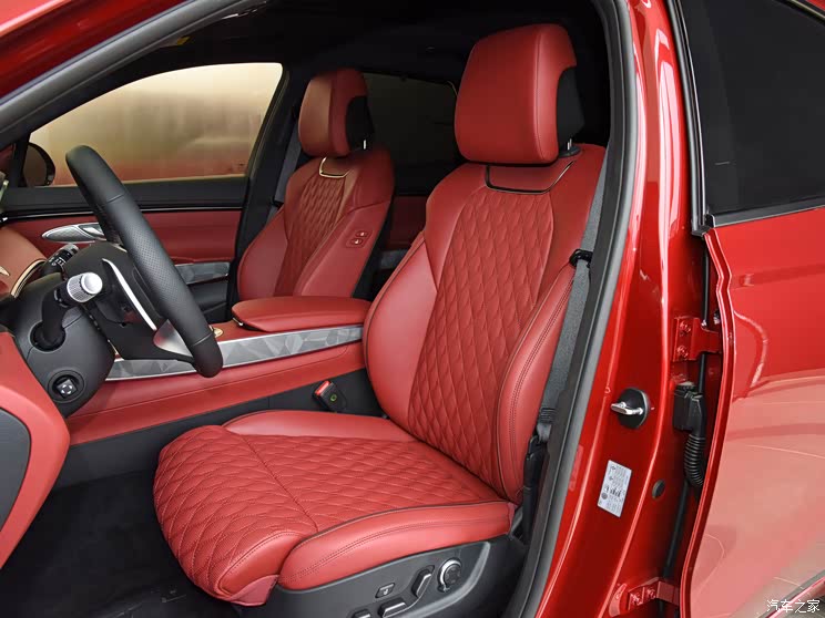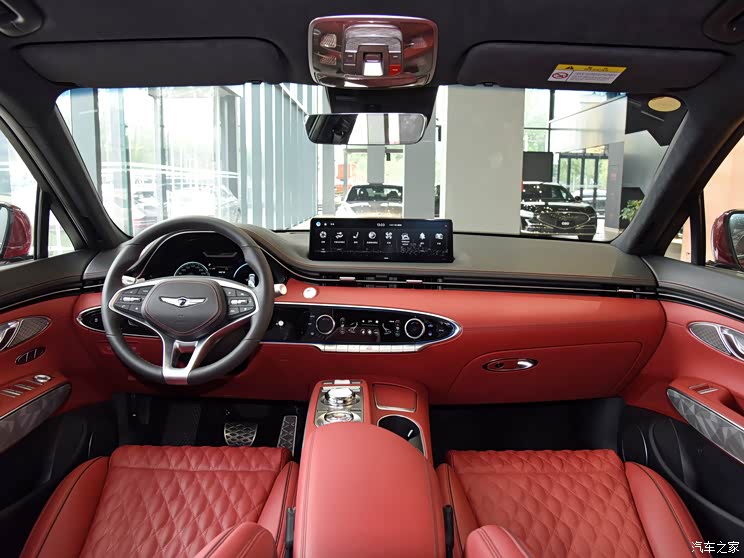 進入到車內,新車整體內飾與GV80有一定相似度,不過更多應用瞭曲線線條,使其在保持豪華感的同時也提升瞭時尚感。方向盤采用瞭圓形三輻式設計,左邊的多功能按鍵負責控制多媒體,右邊的負責輔助駕駛,從方向盤圖標來看該車支持ACC自適應巡航以及車道保持功能。
