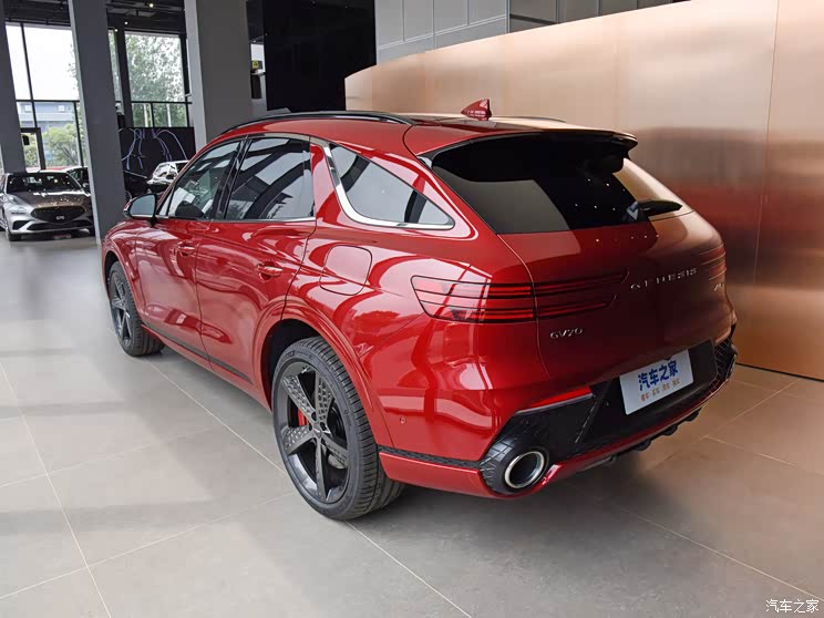 捷尼賽思GV70的尾部設計同樣讓人眼前一亮,這臺新車采用瞭雙層的LED條幅尾燈,很好地與前燈組的設計樣式進行瞭呼應。尾門采用瞭稍稍有些溜背的設計風格,看上去也很優雅。再加上新車采用的尺寸巨大的雙邊共兩出的排氣尾喉很好地烘托瞭新車的運動感。