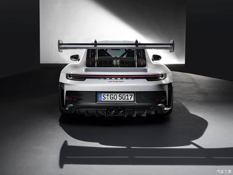 新車後包圍也采用瞭全新的設計樣式,采用瞭更加貼近GT3賽車規格的尾部設計以及大尺寸尾部擴散器,中置雙出的排氣系統也是911 GT3一直以來的特色。眾多的空氣動力學設計為全新911 GT3 RS帶來驚人的下壓力數據,在車輛達到198km/h的時候,可產生409公斤的下壓力,在283km/h的時速下可產生860公斤的下壓力,在賽道中能夠帶來更高的過彎速度和更優秀的高速穩定性。