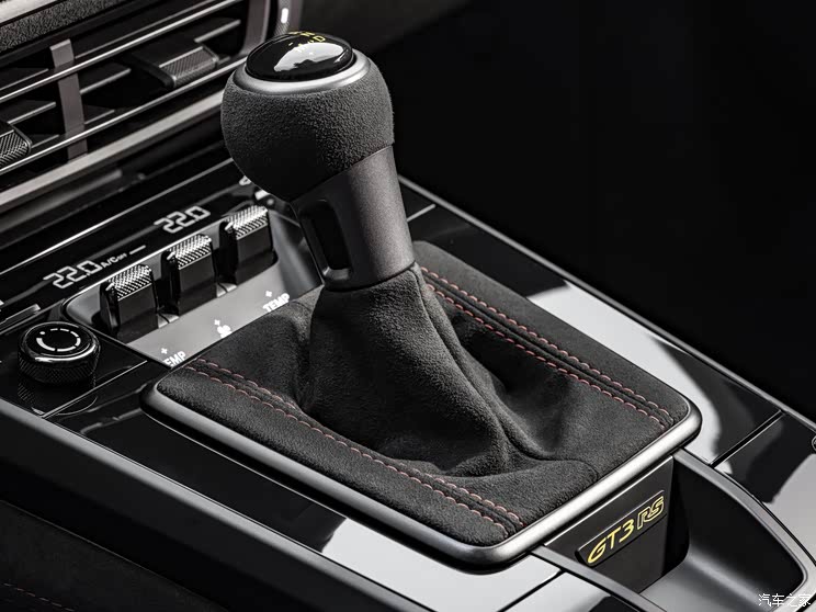 內飾部分,GT3 RS和普通911一樣采用瞭傳統指針式轉速表和雙側液晶屏幕的組合。中控臺配備瞭一個多媒體顯示屏幕,也保留有部分物理功能控制按鍵,做到瞭科技感與機械質感相結合。值得註意的是,換擋桿看上去和機械的手動擋擋桿相類似,但是搭載的是保時捷標志性的PDK雙離合變速箱。其實這是官方有意而為之,官方希望能夠為駕駛者提供類似序列式變速箱的換擋體驗。
