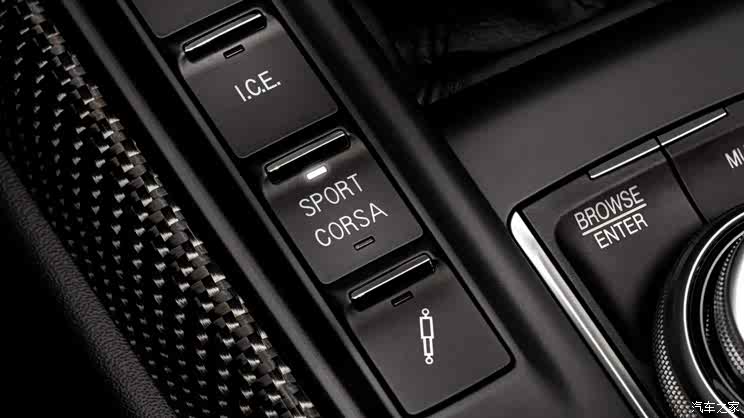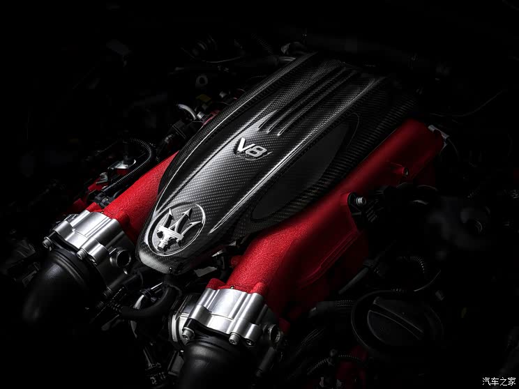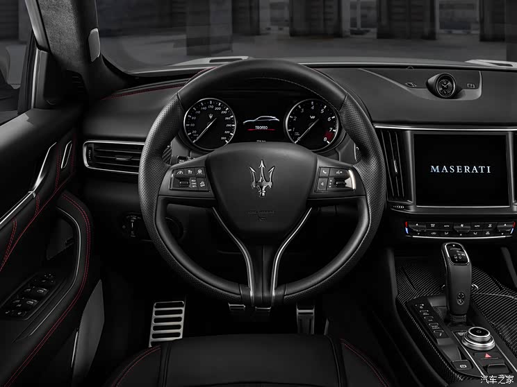 內飾部分,整體內飾佈局猶如其品牌LOGO的三叉戟一般,線條從中控兩側匯聚至中央。作為性能版車型在內飾的選材用料上加入瞭不少的碳纖維材質。座椅和車門側面都采用皮質菱形格樣式搭配紅色縫線,渲染出座艙內的運動氛圍。