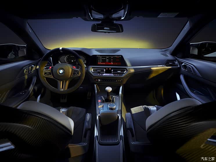 內飾部分,新車的全液晶儀表盤以及多媒體顯示屏依舊風格不變,並搭載瞭帶有M設置的三輻式多功能方向盤。此外,新車還將配有全碳桶椅,車門門檻上有碳纖維裝飾,手動變速箱的擋把頭采用瞭白色+紅色的裝飾,看上去非常精致。