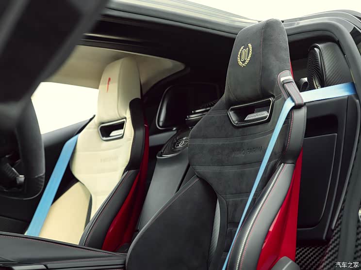 內飾方面,新車采用瞭大量Alcantara材質,座椅采用賽車化的桶形座椅,整個內飾充滿瞭戰鬥氛圍。新車將所有的重要信息通過位於方向盤正前方的細長屏幕顯示在駕駛員的面前。而在駕駛員左右兩側,還擁有兩個旋鈕,左側旋鈕控制驅動模式,右側旋鈕控制變速箱。