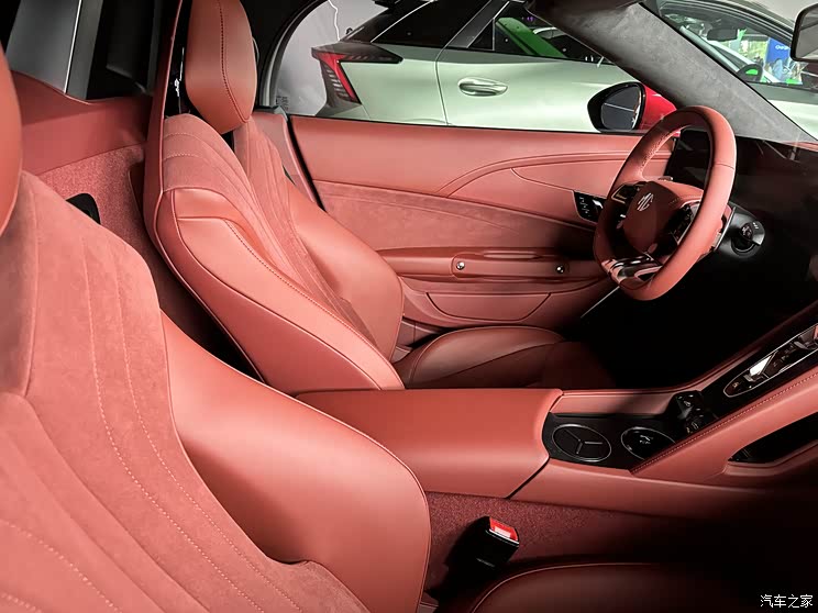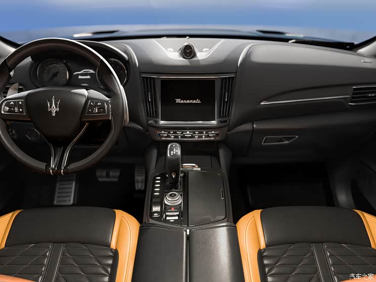 內飾部分,整體內飾佈局猶如其品牌LOGO的三叉戟一般,線條從中控兩側匯聚至中央。作為性能版車型在內飾的選材用料上加入瞭不少的碳纖維材質。在黑色內飾的基礎上,它配備瞭淡陶土色和黑色皮革雙拼的座椅,大量皮質以及Alcantara材質的搭配提升瞭檔次感。