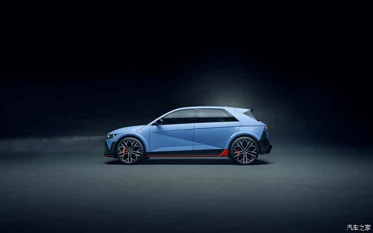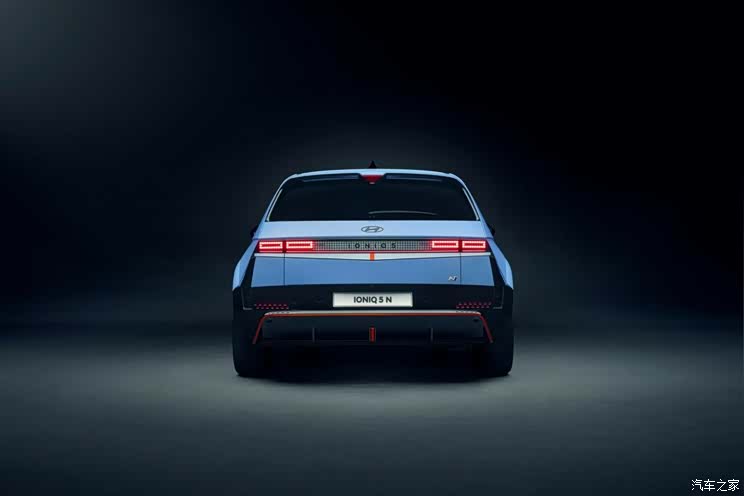 外觀上看,IONIQ 5 N配備瞭醒目的黑色裝飾部件和翼型後擾流板,彰顯其高性能運動風格。相比於現代IONIQ 5而言,IONIQ 5 N在整體高度上降低瞭20mm,底部寬度增加瞭50mm,以適應更寬的輪胎。由於采用瞭全新的擴散器設計,車身長度也增加瞭80mm。