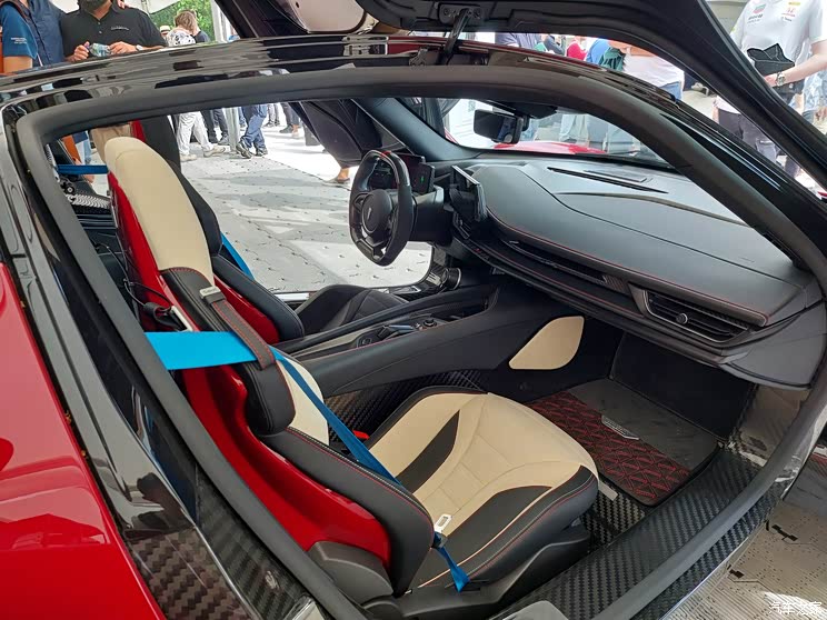 新車內飾設計也充分融合瞭運動感以及科技感,它沒有傳統的中控屏幕,駕駛員前方是環繞式的三聯液晶儀表。方向盤則采用半輻平底式設計,看起來十分科幻。紅色的座椅使得整個內飾氛圍看起來十分戰鬥。同時,據官方表示,其中控面板使用瞭碎碳纖維打造,配合Y字形運動座椅,增強瞭內飾的運動氛圍。