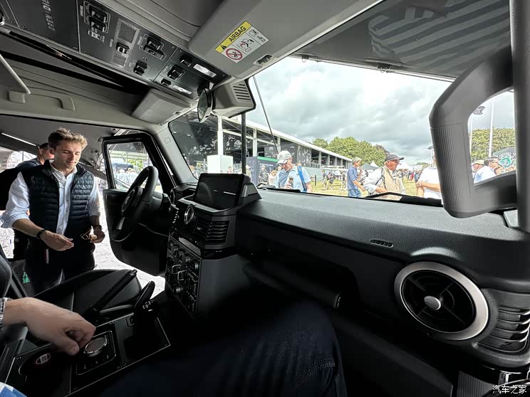 內飾部分,整體依然延續外觀硬朗復古的造型風格。中控采用簡潔平直的線條和粗獷的細節設計,同時有著極為復雜的功能按鍵區,甚至連車頂都佈滿按鍵,大有開民航客機的視覺感。不過全液晶的儀表盤和中控屏還是在車內出現瞭。此外,車輛還采用較為復古純粹的機械手剎。