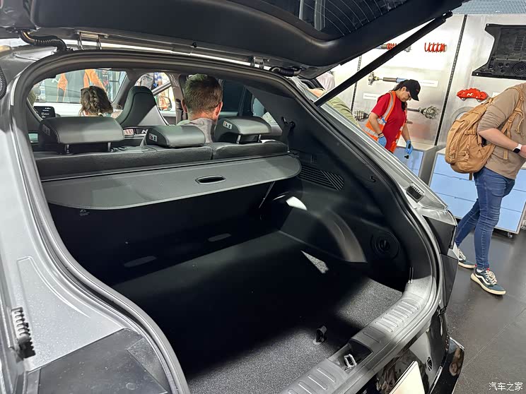 車身側面,車輛的重心較高,而且掀背式的車頂線條讓該車更像一款四門的Coupe車型。車尾部分,從車頂延伸下來的線條到尾部做瞭鏤空的處理,並將剎車燈做瞭環狀設計,吸取瞭一些星際戰艦的外觀設計。分體式的尾燈依舊搭載ISD智能交互燈組,可以隨時和後車進行交流。另外新車還配備可自動升降的主動擾流板,進一步提升空氣動力學性能。