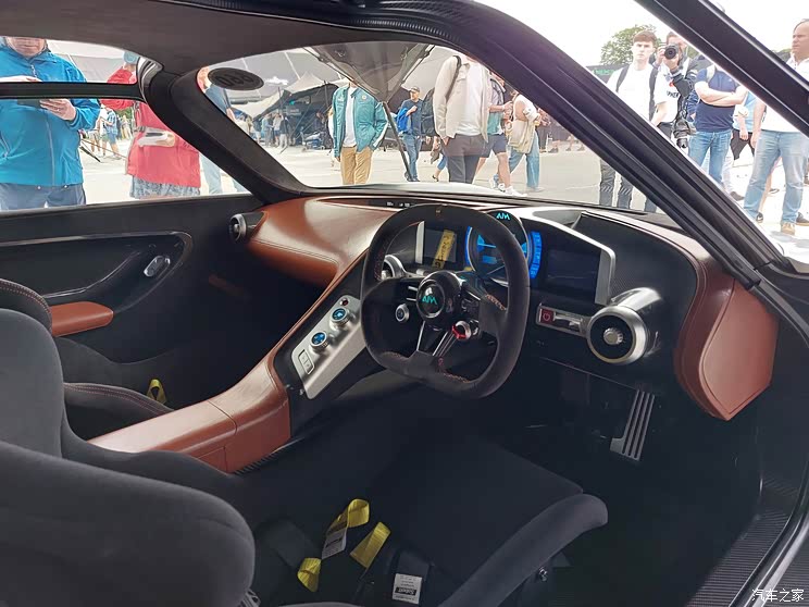 作為一款為駕駛者而生的概念產品,該車的車內十分簡潔,擁有運動方向盤、透明儀表以及與駕駛相關的控制按鍵。我們可以看到它采用瞭大量的碳纖維復合材料,其座椅則使用Racetex面料覆蓋。車門把手采用拉繩替代,此舉也是為瞭減輕車身重量。