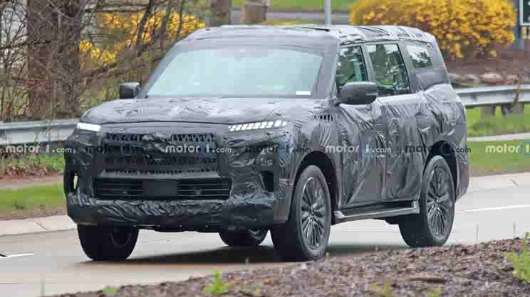此前我們已經獲取瞭下一代QX80的海外諜照。新車的車頭預計采用傢族式的中網,內部為網狀的格柵。車燈為目前流行的分體式設計,上方為狹長的日行燈,下方的大燈與通風孔相連。在側面,這款車會配備隱藏式門把手,C柱之後車身線條收窄,相比於現款或更偏向於時尚。