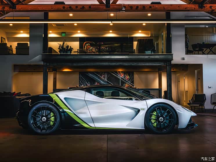 路特斯同樣為這款EVIJA設計瞭專屬內飾。車內皮革座椅以黑白色格紋為主調,汽車頂棚和方向盤采用黑色Alcantara材質,定制的亮黃色對比縫線極具視覺吸引力。同一亮黃色被應用到踏板、中控旋鈕、啟停按鈕、方向盤上的模式切換撥片和空調通風口周圍,進一步增強瞭觀賞性。