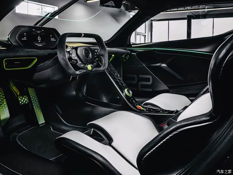 這款專屬的EVIJA車身以北極白為主,輔以悅動的活力黃與低調奢華的炭黑點綴,配色靈感來源於其所在的佈朗GP1車隊。在可折疊的車門後視鏡外殼及車門內襯上都印有醒目的數字22,這是簡森·巴頓的車手編號,象征著他在2009年那場賽事中贏得的冠軍榮耀。