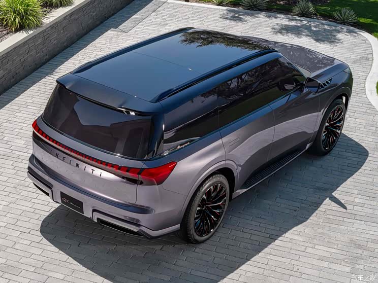 英菲尼迪QX Monograph Concept的尾部型面簡潔舒展,模塊化貫穿式尾燈組與前燈組相呼應,向兩側無限延伸,讓車尾造型不那麼單調。中央的INFINITI品牌標識同樣是黑化處理,使得整車造型達成審美上的統一。