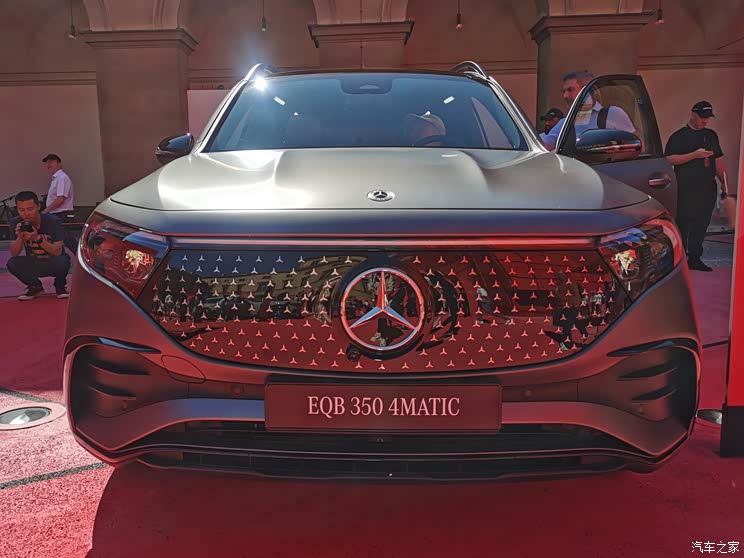 外觀來看,新款EQB重點對車頭進行瞭優化,新車采用瞭全新的中網樣式,其表面采用瞭密集的“滿天星”圖案,和新款的EQE SUV保持一致,相較於老款車型的兩根橫向鍍鉻飾條更具品牌辨識度。而車頭其他部分與現款保持一致。現場的這臺展車使用瞭啞光色的漆面,看上去相當的運動。