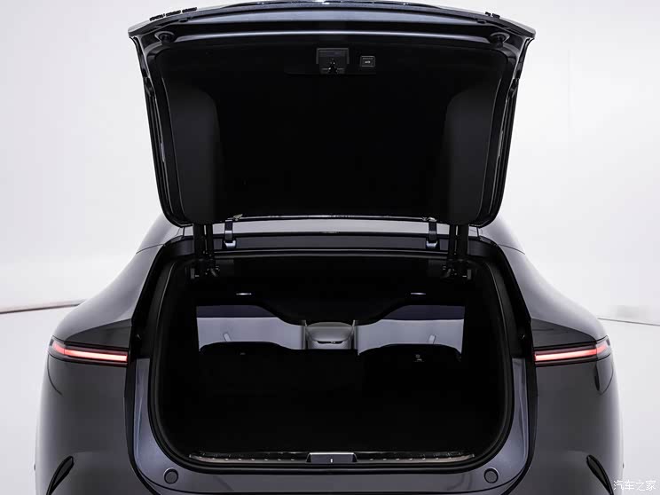 車輛尾部設計獨具個性,車窗線條在尾部迅速匯合,形成銳利的V形後窗,並融合Shootingbrake車型的特點,動感而不失大氣。尾燈並未采用貫穿式設計,幹練簡潔的直線十分具有辨識度,在其上部,還有一個主動升降擾流板,結合尾部的攝像頭和封閉式後窗設計來看,該車將配備高清流媒體後視鏡。