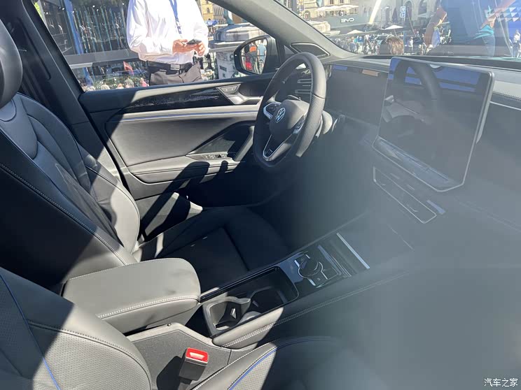 進入車內,相比我們熟悉的大眾ID.5車型,新車顯然更加“花哨”一些,比如,新車在中控臺處融入瞭諸多香檳金設計元素,起到不錯的點綴作用。與此同時,新車中控臺采用瞭簡潔的佈局,大尺寸中控屏+梯形液晶儀表的組合也會讓我們感到十分親切。