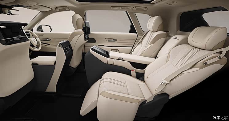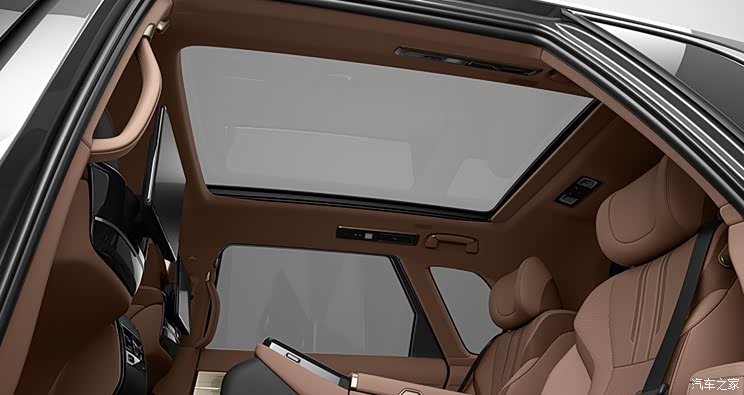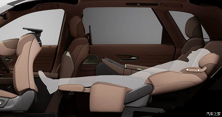 更多的是註重後排的營造,後排車門提供普通打開和側滑門兩種開門方式,普通打開的後排車門可以75度開啟。後排采用兩個獨立的座椅,座椅寬大厚實,有著不錯的腿部支撐,第二排座椅可以放倒,提供最大77度調節,甚至接近於躺平。每個座椅擁有獨立的顯示屏,中央有著寬大的中央扶手,並且每個座椅擁有獨立的座椅控制屏,後排還提供瞭專屬的小桌板。車窗還有變色功能,提供私密空間。後備廂容積340L。另外新車還可以遠程控制。