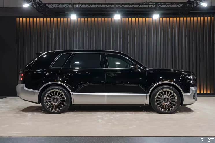 車身側面,新車的尺寸龐大,粗壯的D柱與勞斯萊斯庫裡南完全相同,車身有大量的鍍鉻裝飾,彰顯豪華。此外,尾燈也采用瞭四個L型的設計,與頭燈呼應。車型尺寸方面,其長寬高分別為5205/1990/1805mm,軸距為2950mm,整車質量達到瞭2570kg,成員數量為4人。