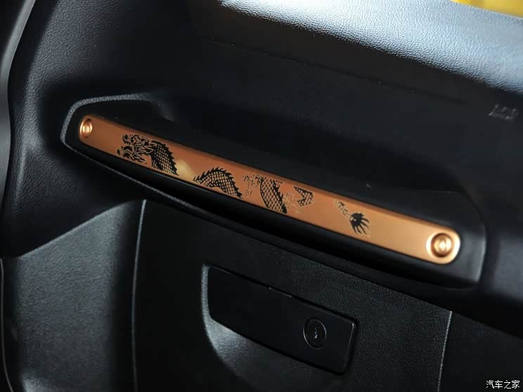 內飾方面,該車依然以黑色和古銅金為主要配色風格,黑色的真皮座椅輔以古銅金縫線,凸顯質感,而座椅側面還加入瞭龍鱗紋的古銅金真皮包裹,另外,在頭枕上,其也加入瞭激光雕刻而成的龍圖騰,除此以外,概念車的方向盤、車門內側真皮處和車內腳墊均在細節上配有古銅金縫線和龍形圖樣,處處體現中國龍的特色。