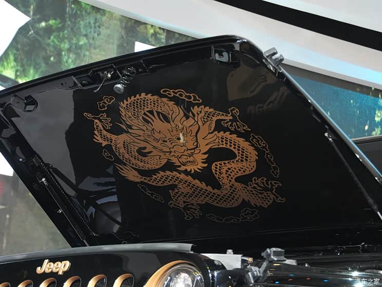 它采用晶炭黑車身塗裝,同時包括前格柵、輪圈以及大燈罩等處均增加瞭古銅金裝飾,而這也是中國龍的代表色。另外,這款概念車引擎蓋上所噴繪的龍形花紋一直延伸至車身側面,如同配有紋身一般。除瞭外飾噴繪,該車的備胎蓋也印制瞭龍圖騰的徽章。